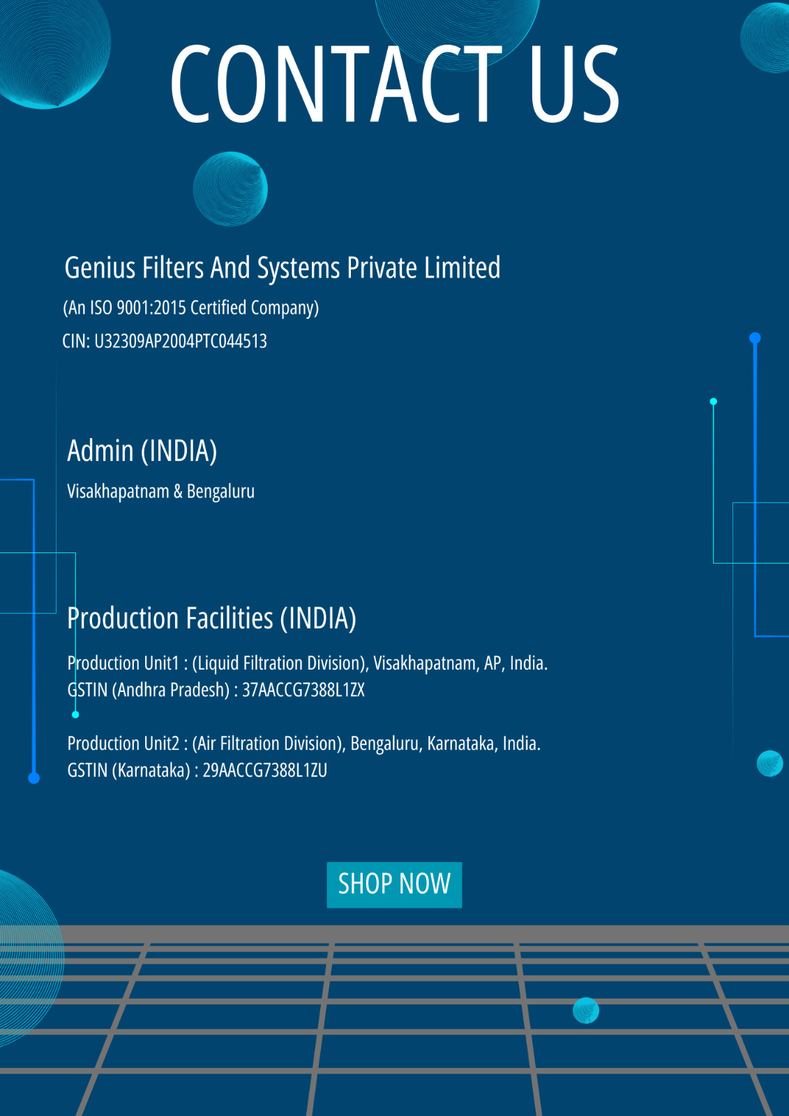 Production Unit1 : (Liquid Filtration Division), Visakhapatnam, AP, India.