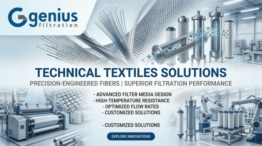 Genius Filters and Systems Private Limited offers specialized Technical Textile Solutions designed for advanced filtration, industrial processing and engineered material applications. By combining material science expertise with precision manufacturing, we develop high-performance textile-based filtration and industrial fabrics that meet demanding operational requirements.